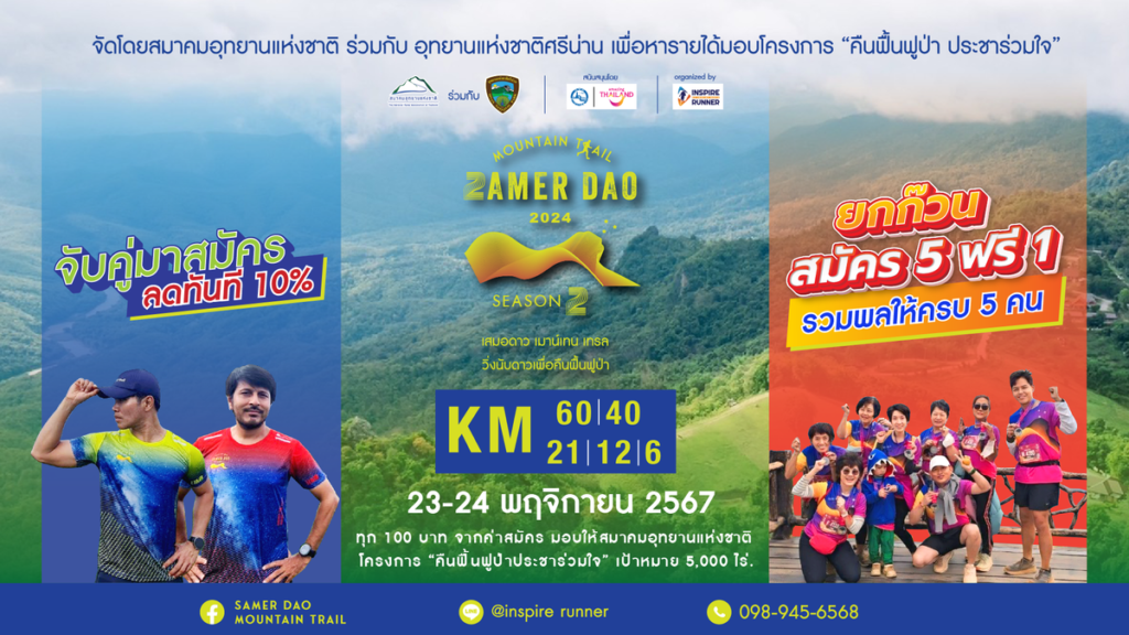 กลับมาอีกครั้ง Samer Dao Mountain Trail # 2“วิ่งนับดาว คืนฟื้นฟูป่า” กับสนาม Trail ท่ามกลางธรรมชาติ วิ่งตะลุยสายหมอก ในป่าต้นน้ำน่าน
